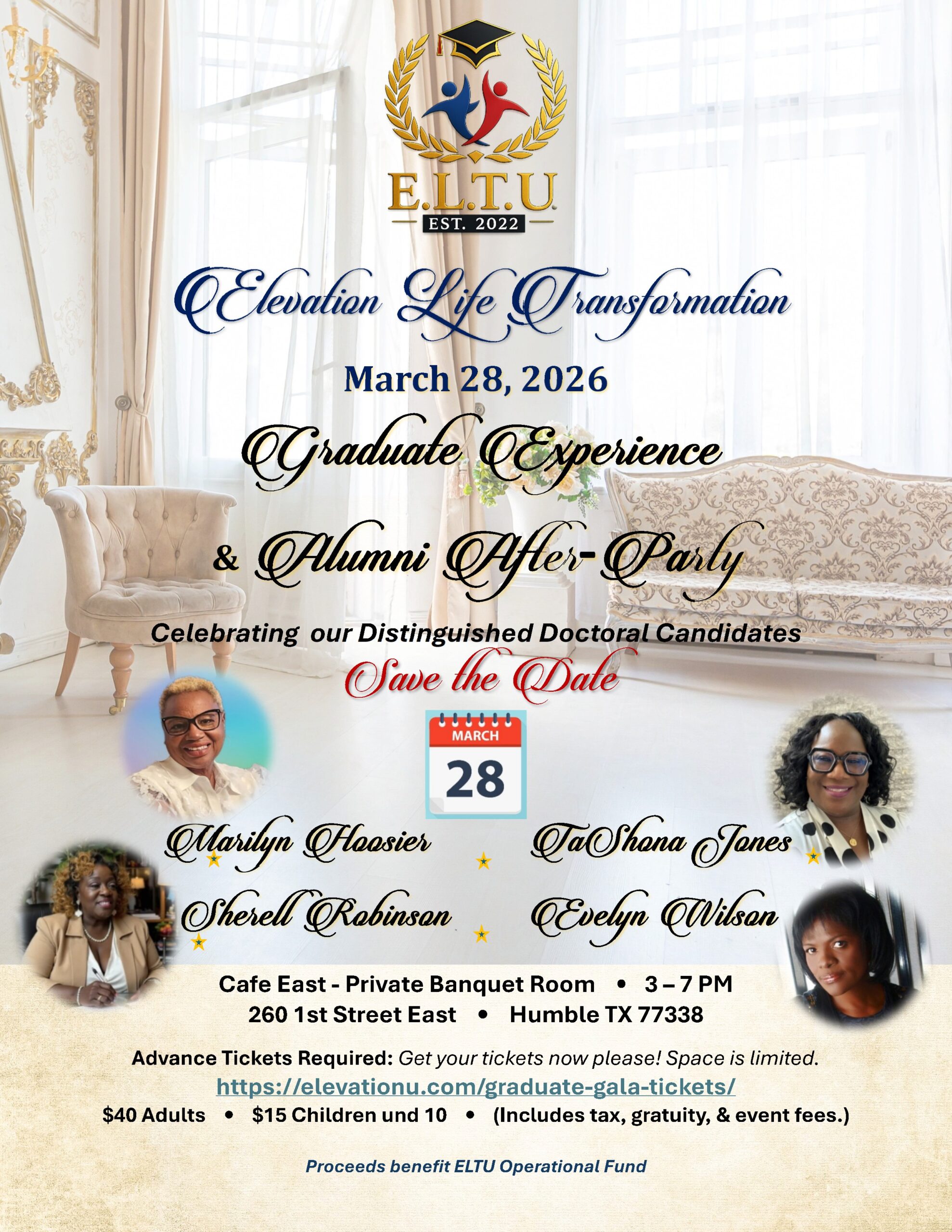 Earn your degree or certificate graduating from ELTU receiving your diplomas and transcripts in a world-class ceremony celebrating your growth, life-change, and transformational accomplishments.